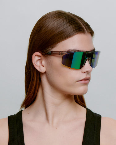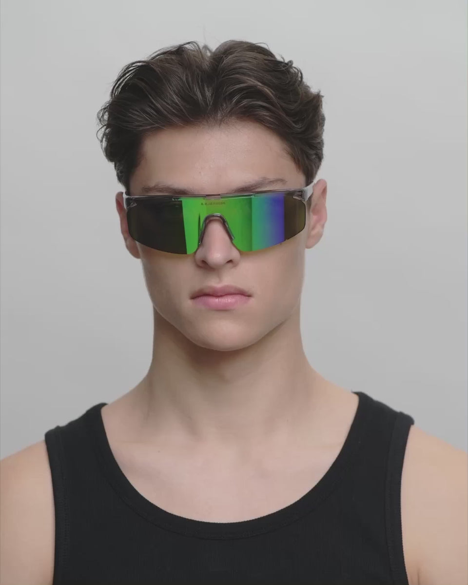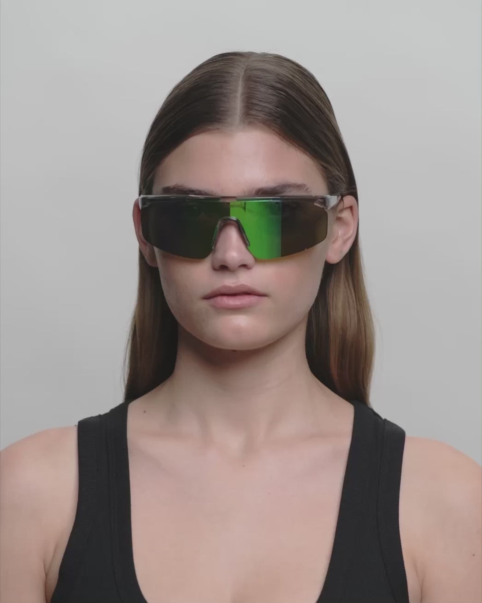 Rush - Grijs Transparant is een scherp, wraparound sportmodel gemaakt voor beweging. De strakke glazen en matte afwerking zorgen voor een futuristische look, terwijl de functionele details berekend zijn op hoge hartslag en wisselende omstandigheden. Rush is voor iedereen die prestaties en stijl in dezelfde bril wil - zowel tijdens het trainen als in de stad.