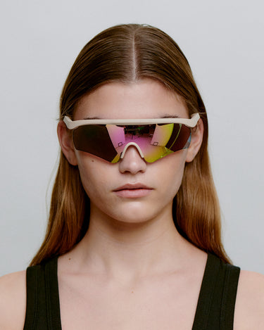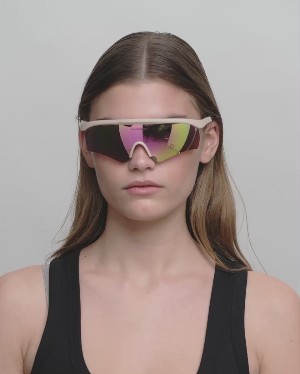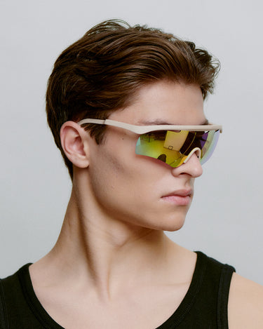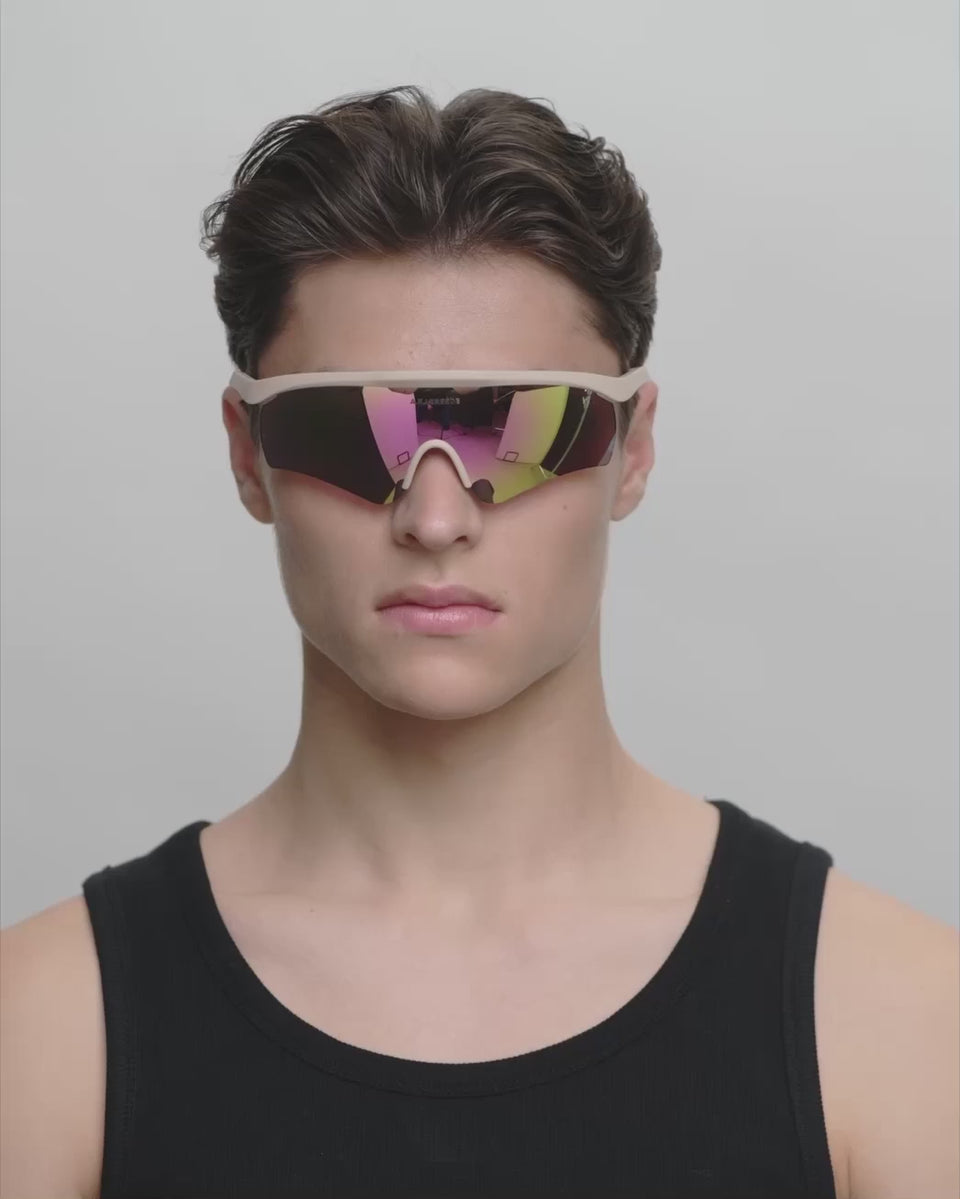 Vigour - Beige is een dynamisch sportsilhouet met stuwende energie. De aerodynamische vorm en geventileerde details zijn gemaakt voor snelheid en focus - en voor degenen die hun set-up willen aanpassen wanneer het licht en het tempo veranderen. Vigour is de sportbril die prestatiedetails combineert met een strak, gecontroleerd ontwerp.