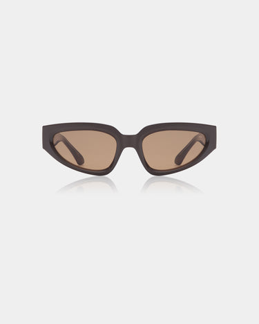 Een iets groter, klassiek maar trendy paar met smalle ovale cateye glazen in een rechtopstaand, robuust montuur met brede veren die samen een sterke maar vrouwelijke look creëren.