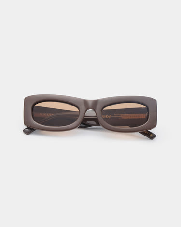 De op de jaren 70 geïnspireerde zonnebril Frida heeft een cateye-effect met een vierkant, licht gebogen montuur. Frida heeft een smalle maar stevige constructie die zorgt voor een scherpe en klassieke look die bij elke stijl past.