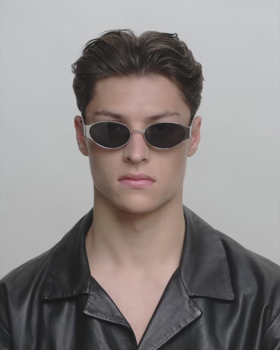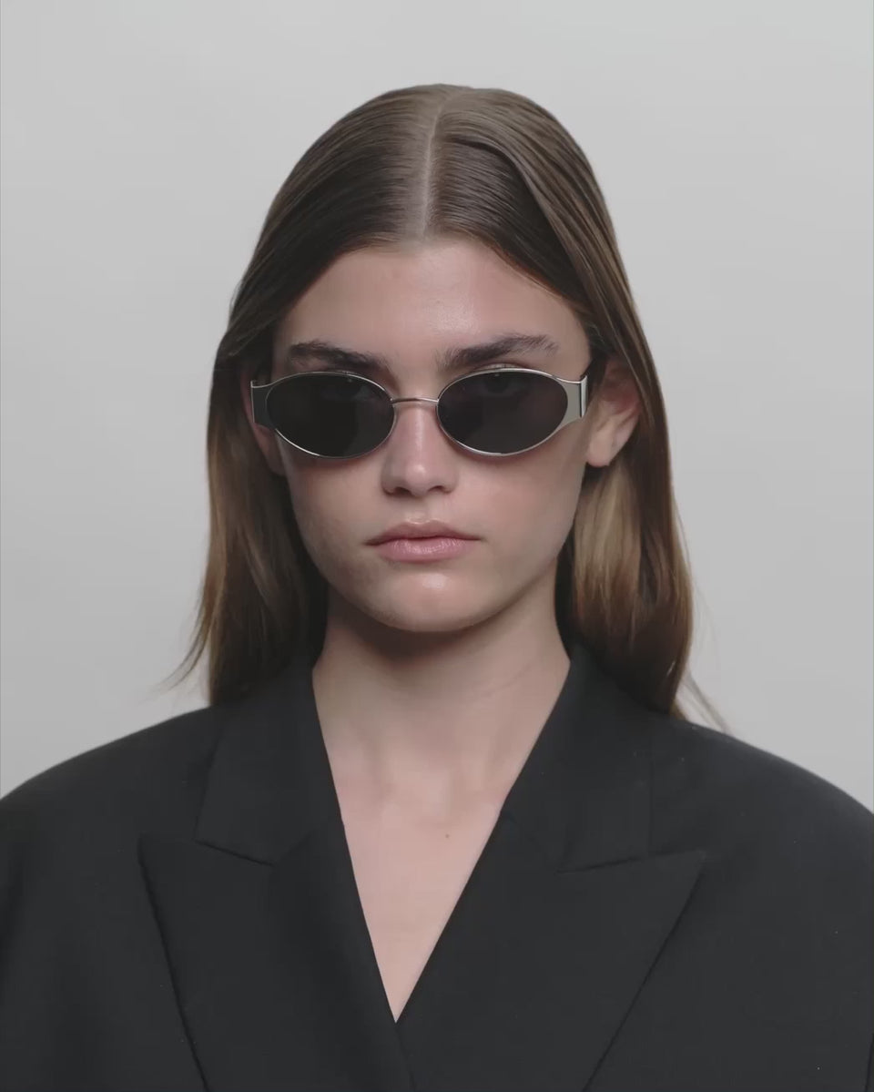Bella - Zilver Zwart - Zilver Zwart is een compacte zonnebril met ovale 90's attitude en een lichte cat-eye interpretatie die een vrouwelijke, scherpe look geeft in een klein formaat. Het is perfect als je een zonnebril wilt die modieus aanvoelt, maar toch clean en gemakkelijk te dragen is. Bella doet veel met weinig - en werkt zowel als een alledaags detail als een statement.