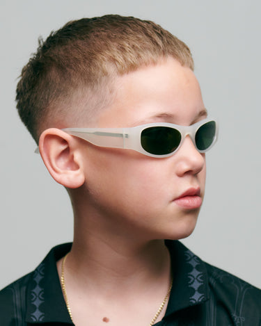 Al onze brillen worden geproduceerd van BPA-vrije en nikkelvrije materialen om allergieën te voorkomen. Gust Junior is een smalle zonnebril geïnspireerd op de jaren '90 met attitude.