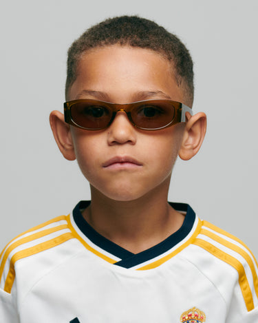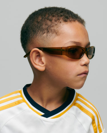 Al onze brillen worden geproduceerd van BPA-vrije en nikkelvrije materialen om allergieën te voorkomen. Gust Junior is een smalle zonnebril geïnspireerd op de jaren '90 met attitude.