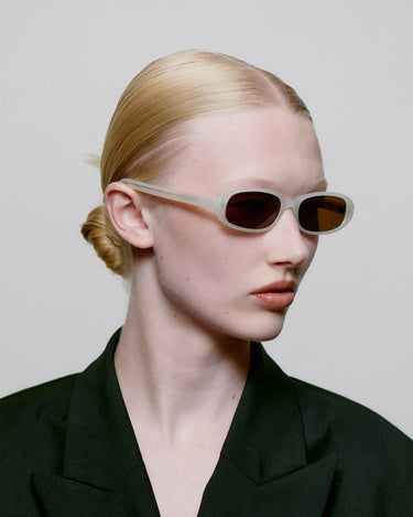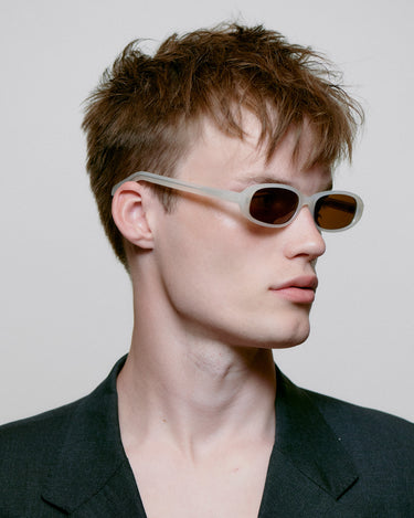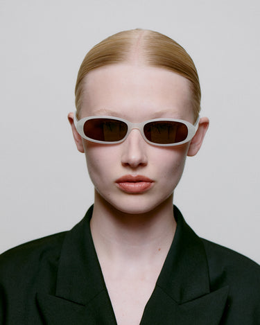 Macy is een super smal unisex model geïnspireerd door de jaren '90, ontworpen met een licht opwaarts effect, ovale smalle lenzen en een zacht afgerond montuur, dat een coole ontspannen sfeer toevoegt.