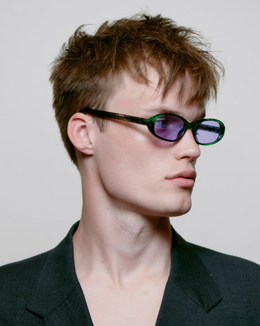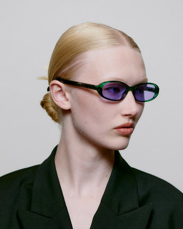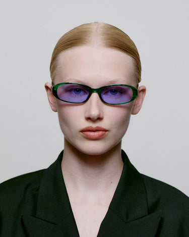 Macy is een super smal unisex model geïnspireerd door de jaren '90, ontworpen met een licht opwaarts effect, ovale smalle lenzen en een zacht afgerond montuur, dat een coole ontspannen sfeer toevoegt.