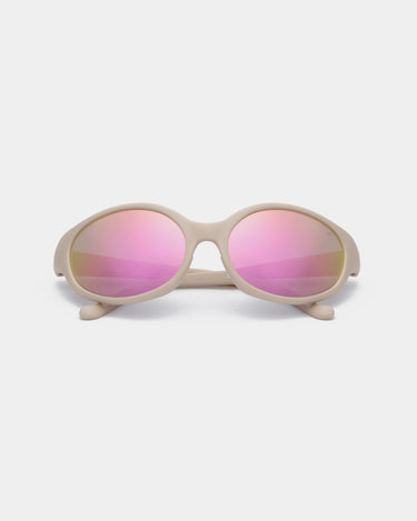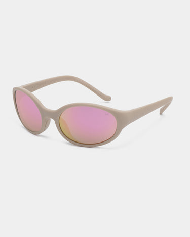 De zachte rondingen en reflecterende lens creëren een krachtige expressie.