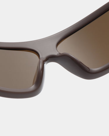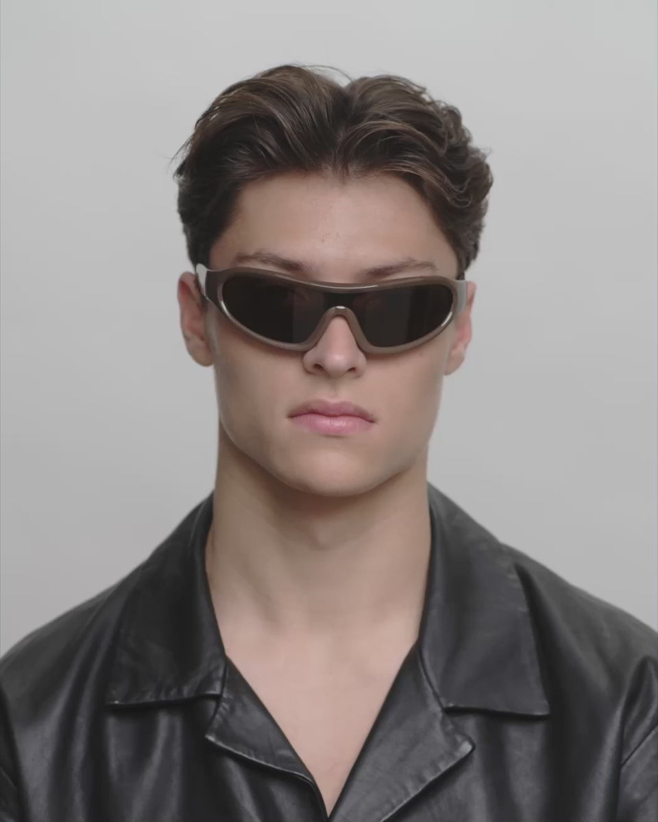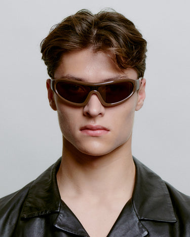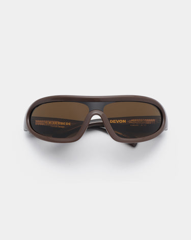 Devon - Chocolate is een opvallend wikkelmodel met een sportieve retrolook. Het gebogen ontwerp volgt het gezicht en combineert mode en functie. Een statement zonnebril voor actieve dagen en een urban everyday look.