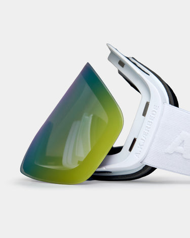 Enry - Snow White is de ski- en snowboardbril van A.Kjærbede, gemaakt voor iedereen die een strakke, minimalistische look wil - maar met eigenschappen die zowel op de piste als daarbuiten van pas komen. Hier krijg je een skibril waarbij zichtbaarheid, comfort en snelle afstelling centraal staan: anti-fog voor helderheid, UV400 voor bescherming en een REVO coating die helpt sneeuw en ijs te onderscheiden in wisselende omstandigheden.