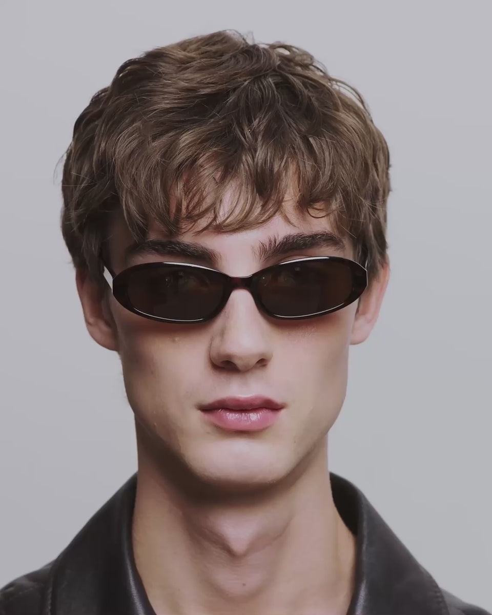 Macy is een super smal unisex model geïnspireerd door de jaren 90, ontworpen met een subtiel opwaarts effect, ovale smalle lenzen en een zacht afgerond montuur dat een coole, ontspannen sfeer toevoegt.